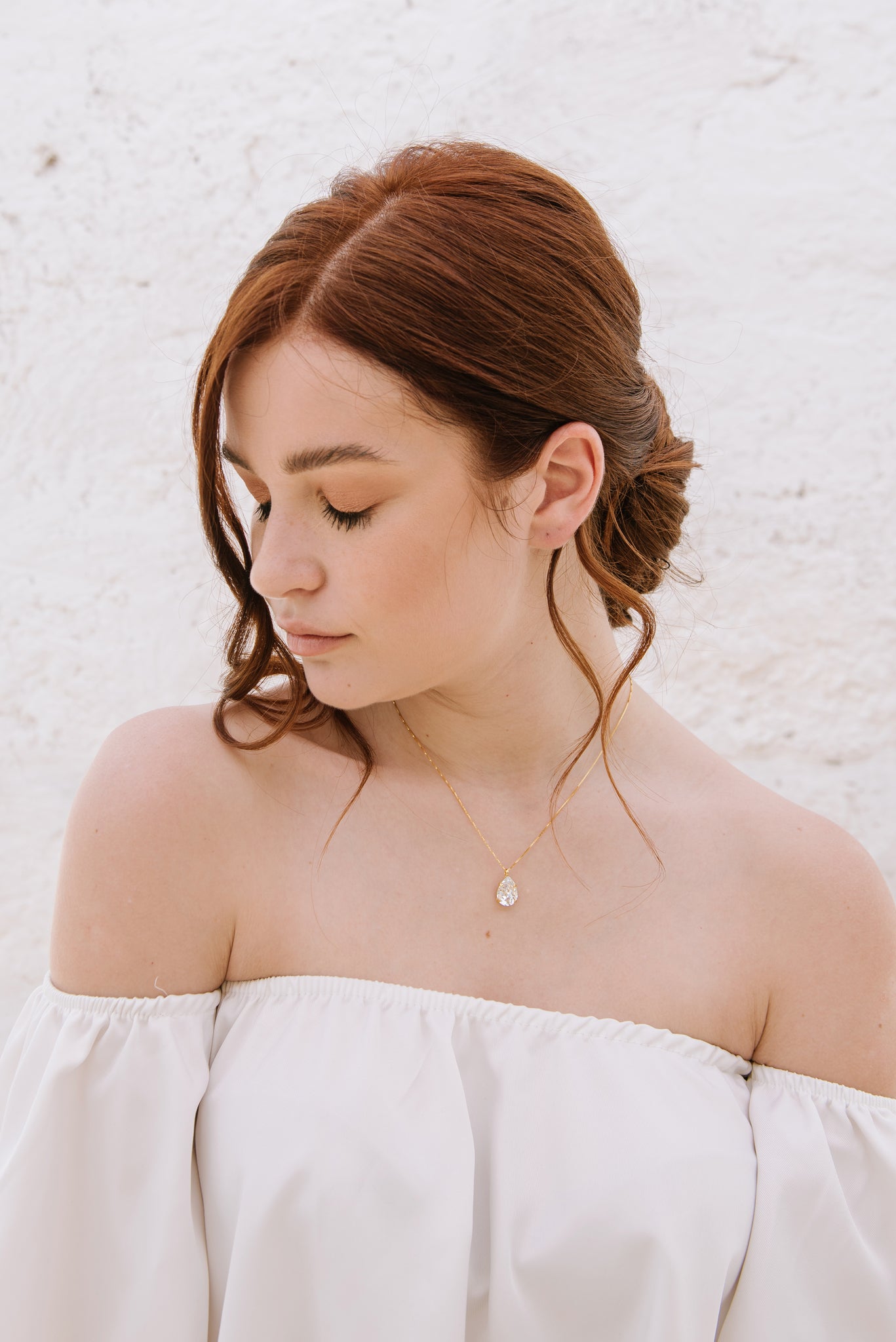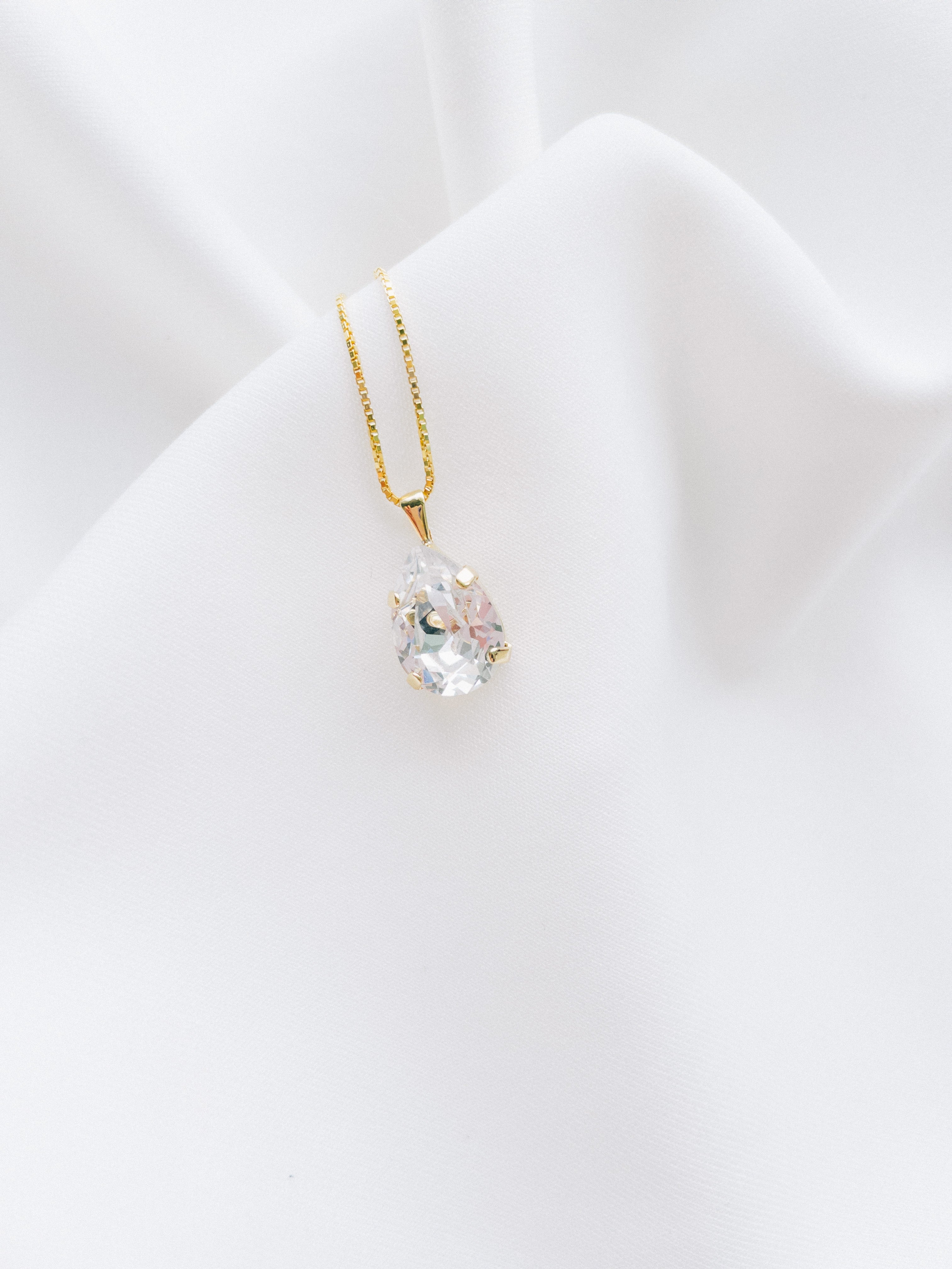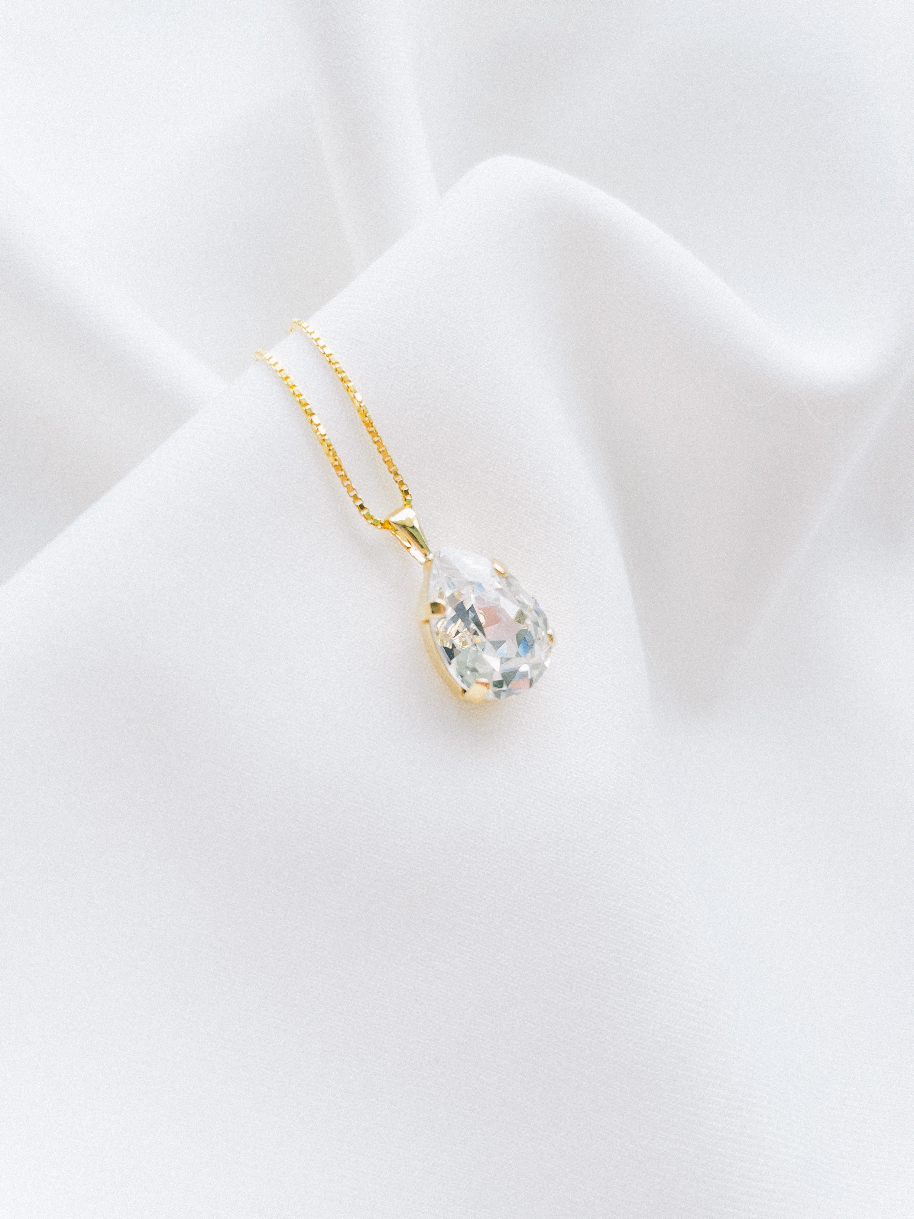 The Princess crystal pendant Necklace, featuring a classic crystal drop.