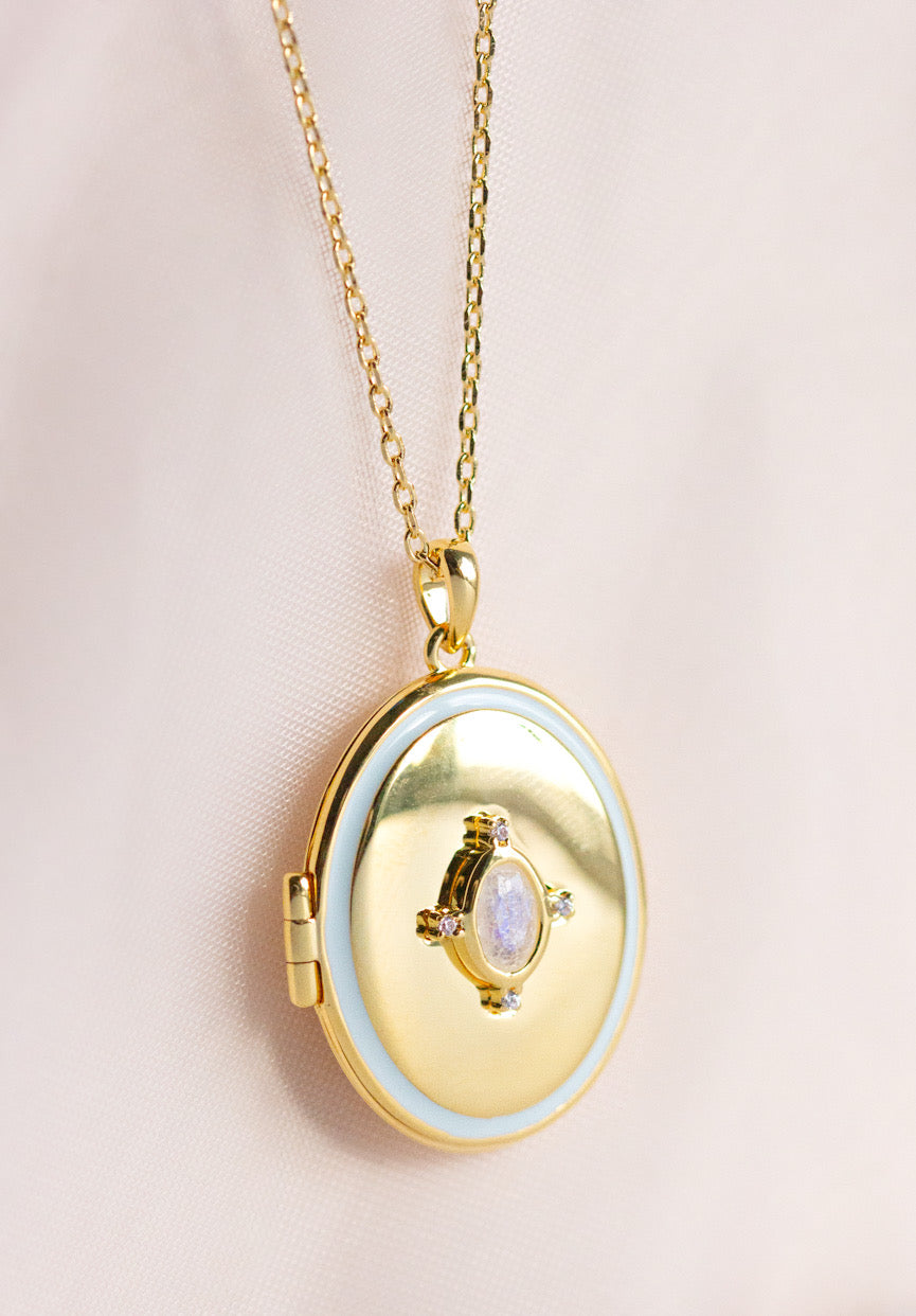 The Heirloom Photo Locket, A place to keep treasured memories close to the heart. A timeless yet meaningful gift for your loved one. Our latest edition featuring a semi-precious gemstone of new beginnings - Moonstone. Exquisitely handcrafted and made concisely with recycled metals and the brightest crystals.
