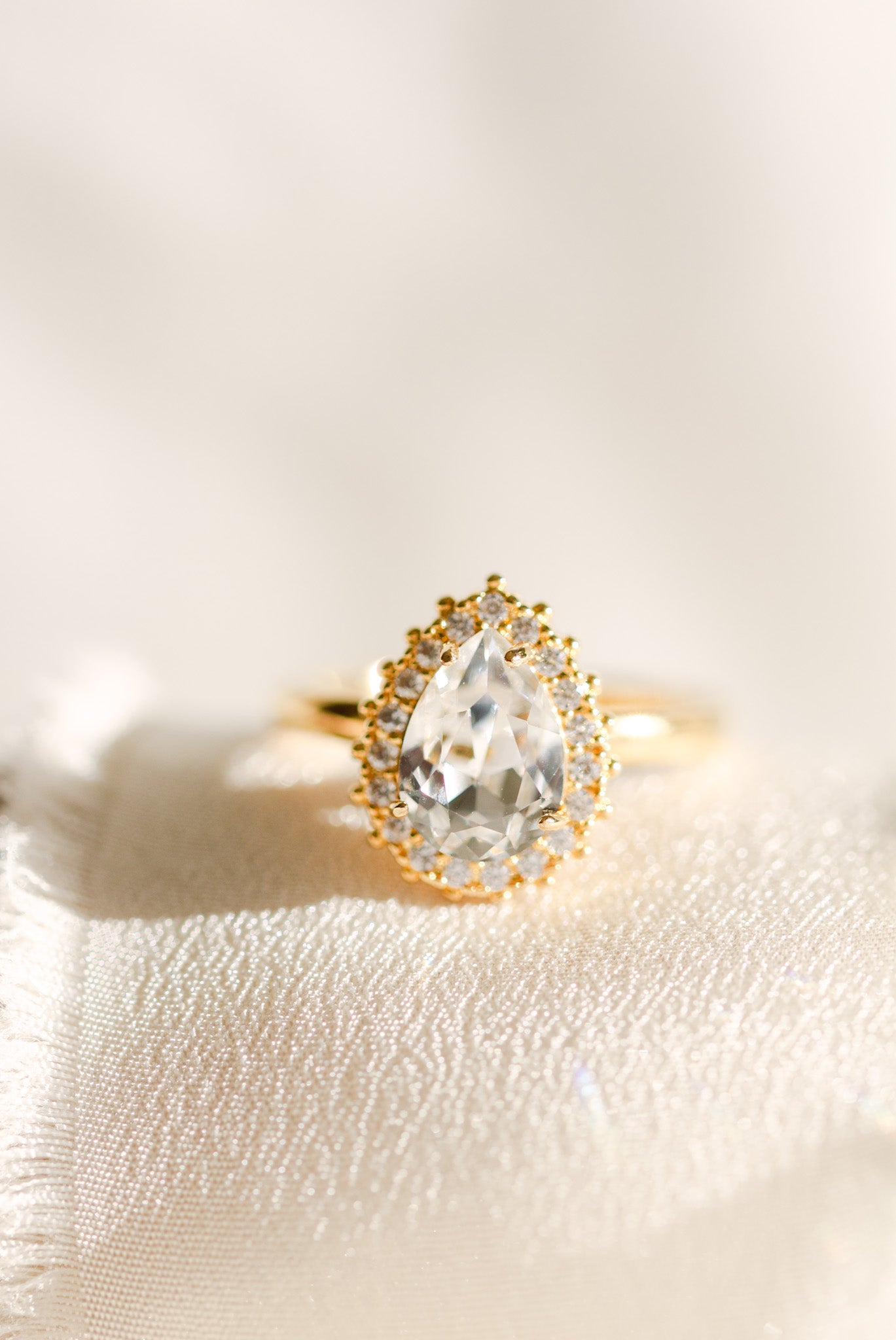 Crystal Teardrop Halo Adjustable Gold Plated Ring