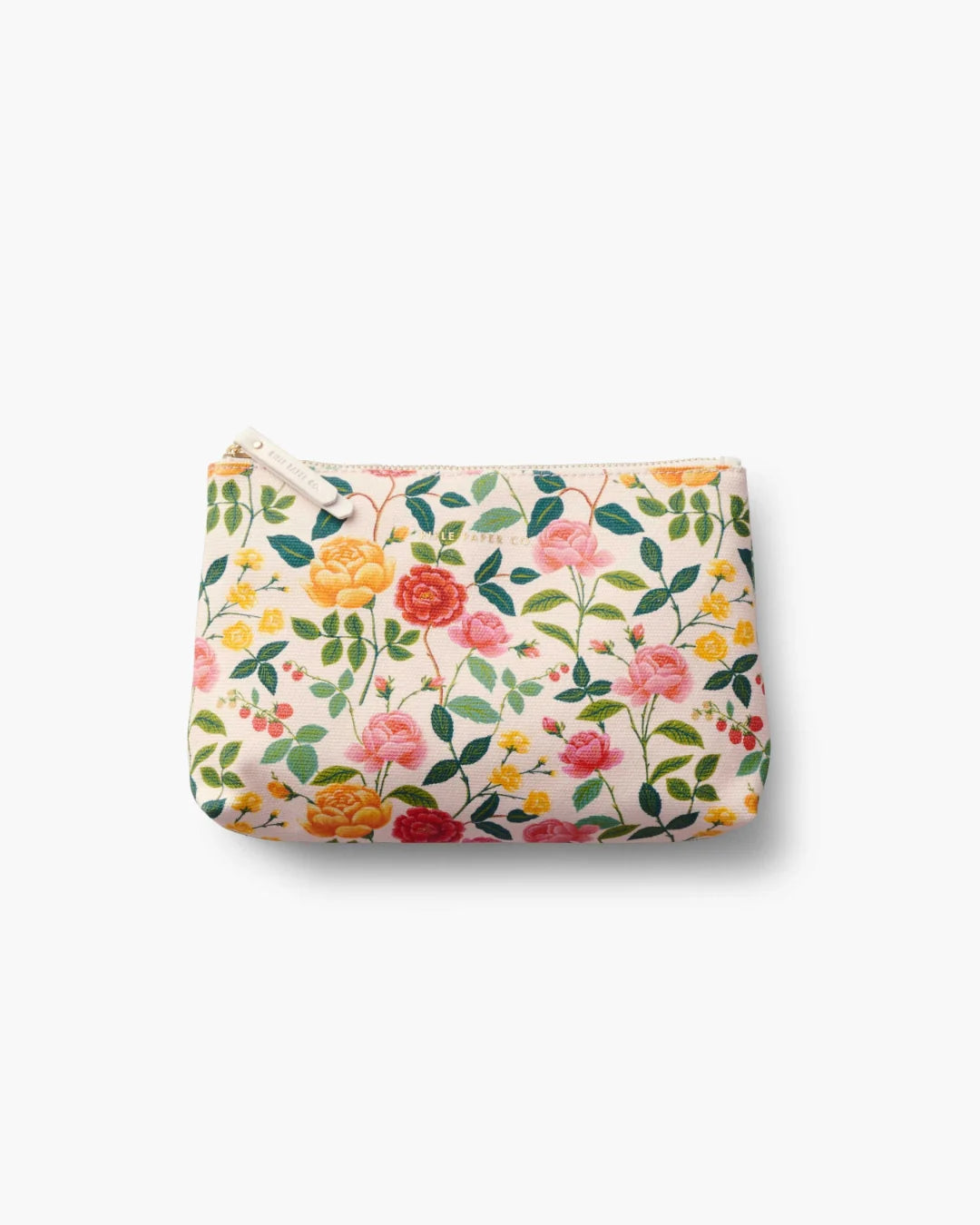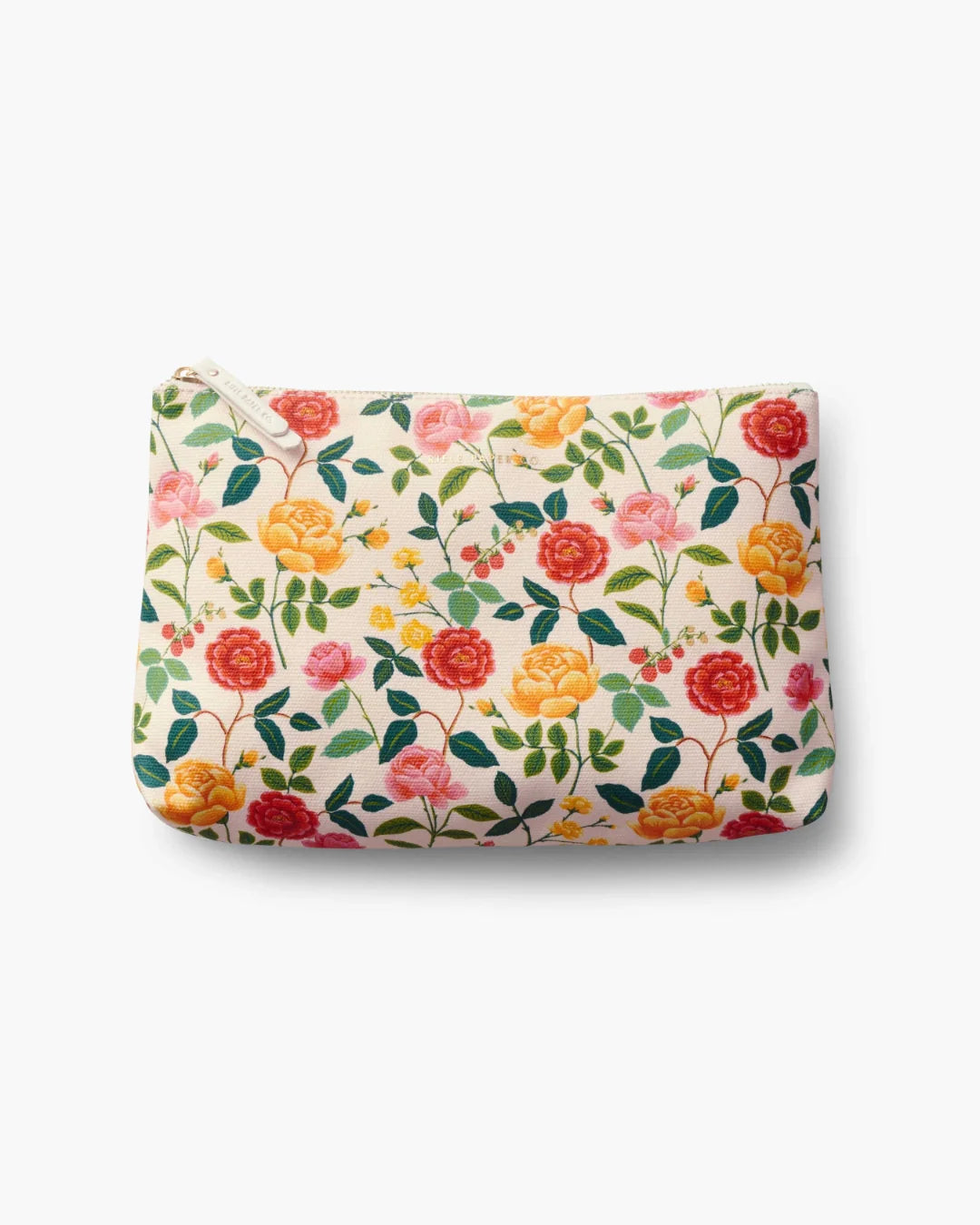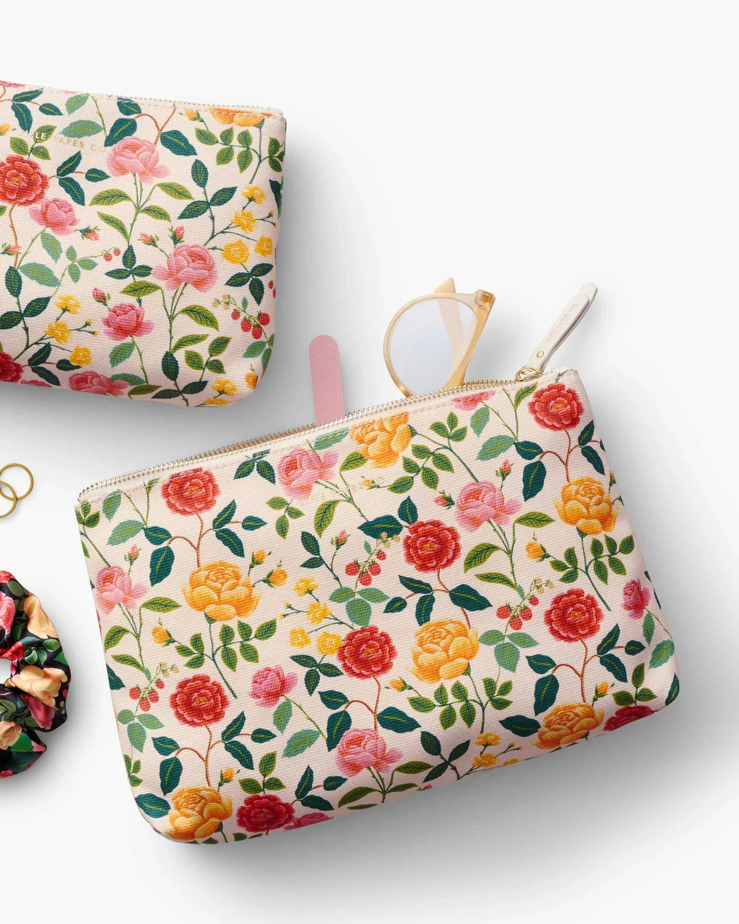 A set of two cotton canvas pouches featuring our illustrated Roses print. The pouches are spacious and lightweight, great for travel, organization, or tossing in your everyday bag.