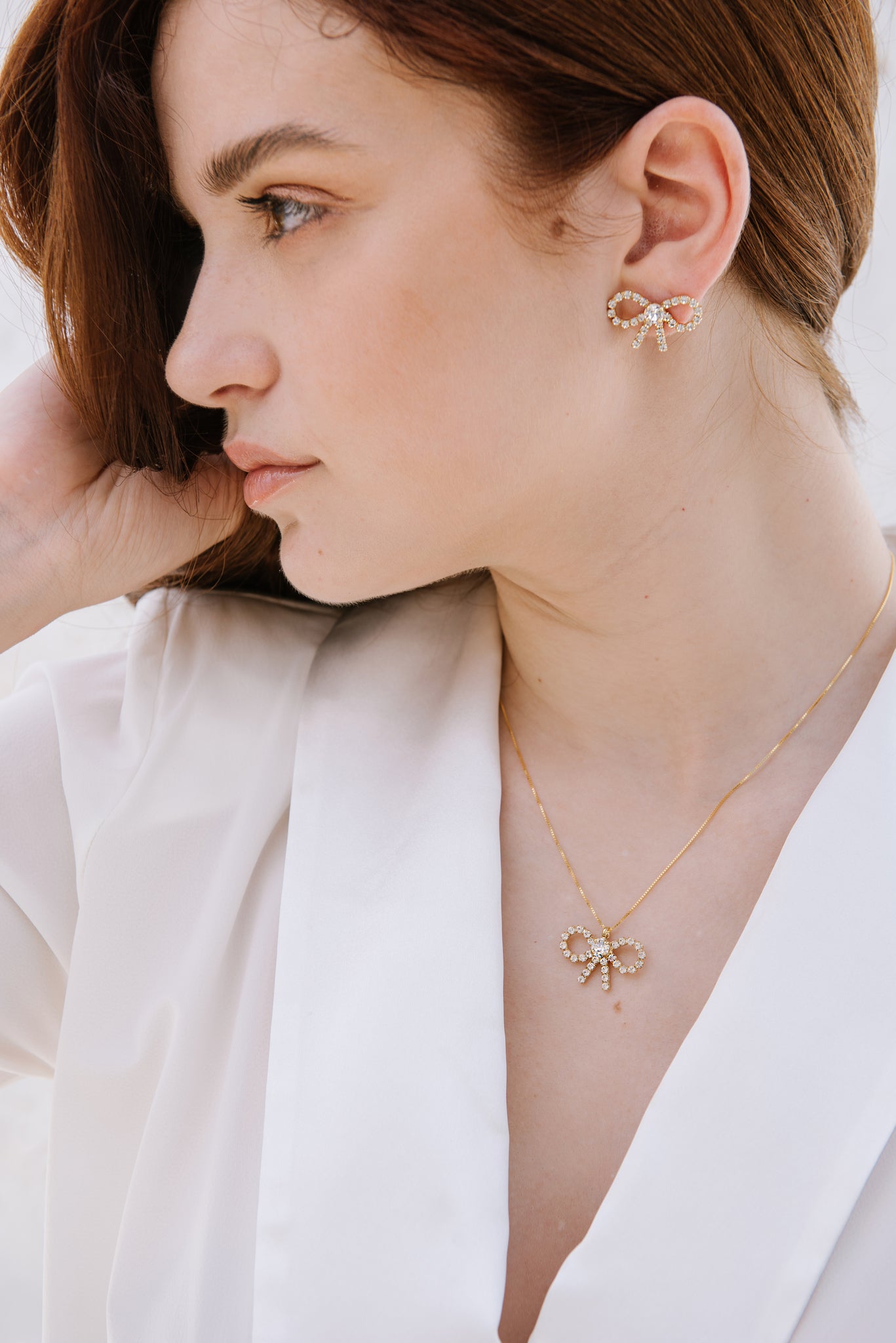 You all know by now that we are huge fans of delicate ribbons and bows - Of course, along came the Chiffon Necklace, as perfect as a bow should be. Even more so when matched up with the Chiffon Earrings!