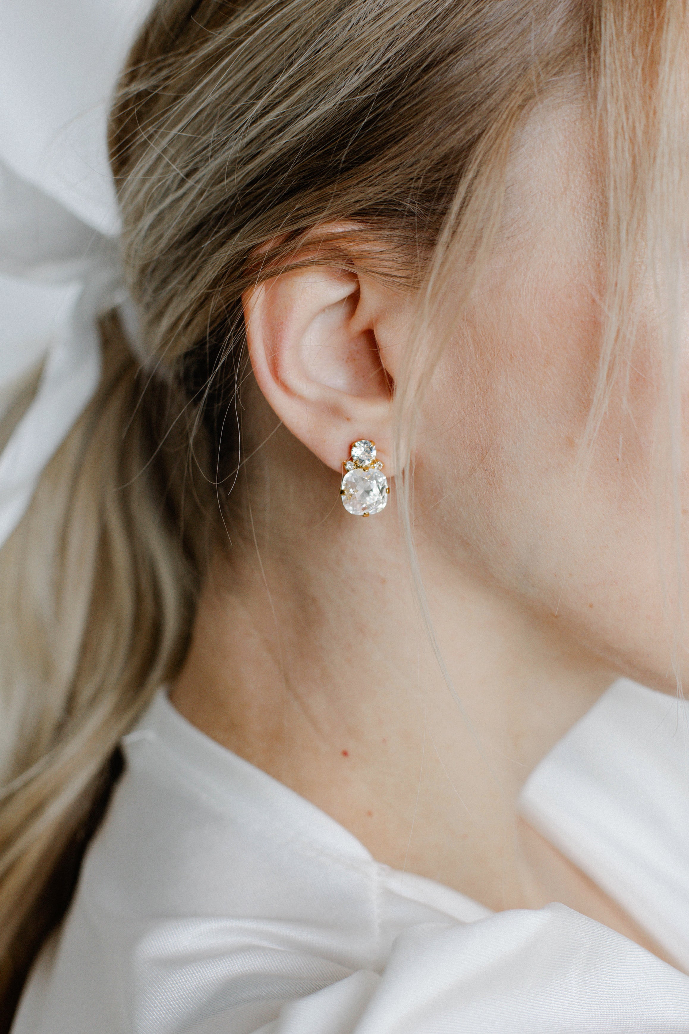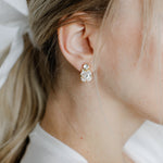 Simple, yet full of charm. The Edith Earrings feature a classic cushion-cut stone surrounded by tiny crystals that catch the light beautifully. They’re easy to wear and add just the right touch of sparkle—perfect for every day or those moments that matter most.