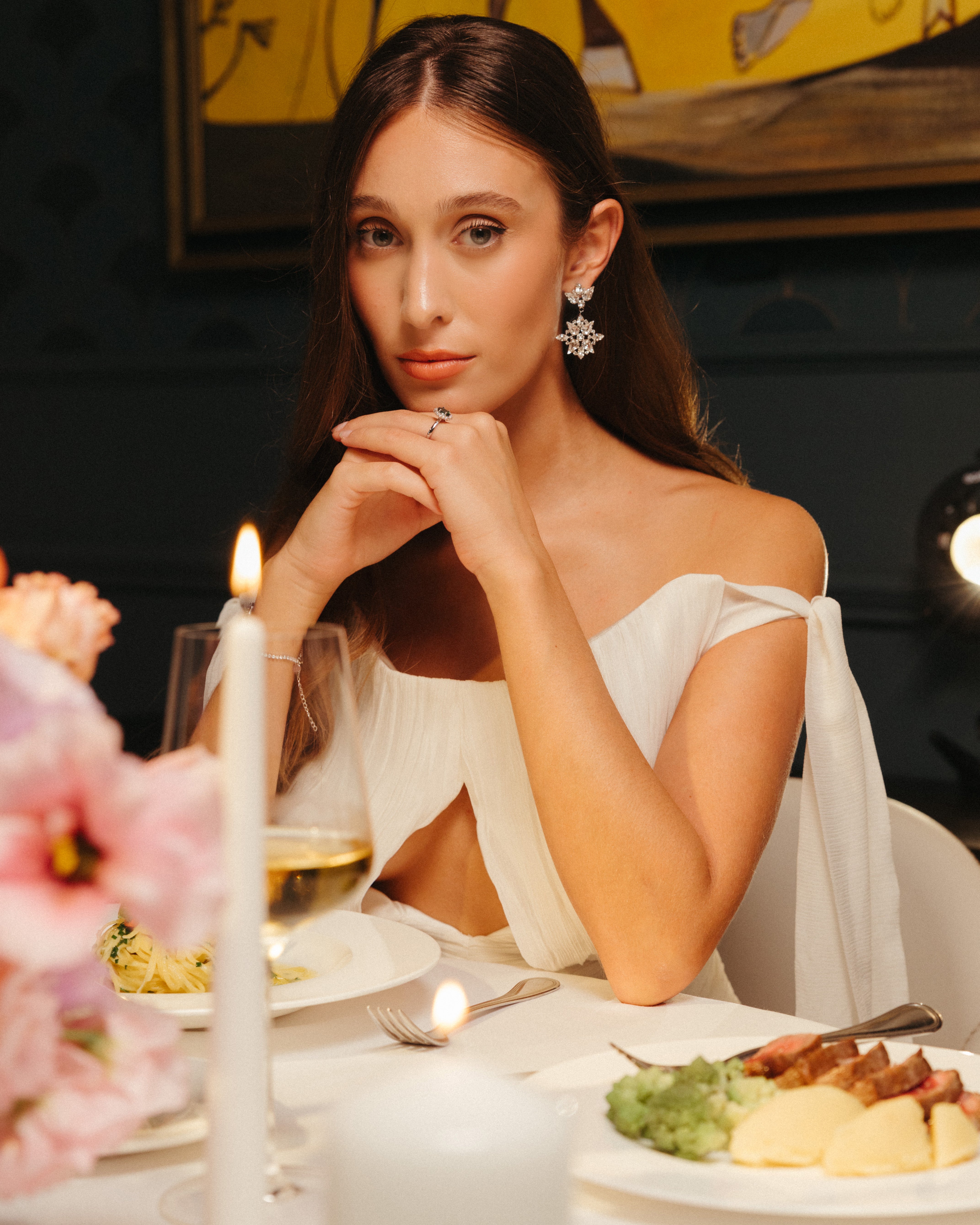 The Trident Earrings, an elegant statement - Perfect for brides looking to make an unforgettable entrance, these earrings add a touch of modern glamour to classic bridal elegance. Their radiant, crystal-clear stones capture and reflect light, creating a dazzling sparkle.